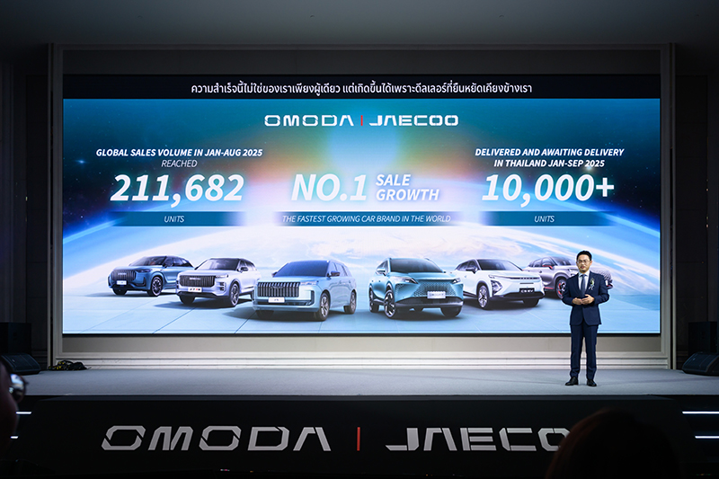 25 กันยายน 2568 OMODA & JAECOO (โอโมด้า แอนด์ เจคู่) ผู้นำนวัตกรรมยานยนต์พลังงานใหม่ ฉลองครบรอบ 1 ปีของการดำเนินธุรกิจในประเทศไทย พร้อมประกาศถึงผลตอบรับอันน่าประทับใจของ JAECOO 5 EV ที่สามารถทำยอดจองได้กว่า 5,000 คันในเดือนสิงหาคม 2568 สะท้อนให้เห็นถึงความเชื่อมั่นของผู้บริโภคชาวไทยที่มีต่อนวัตกรรมยานยนต์ไฟฟ้าของแบรนด์