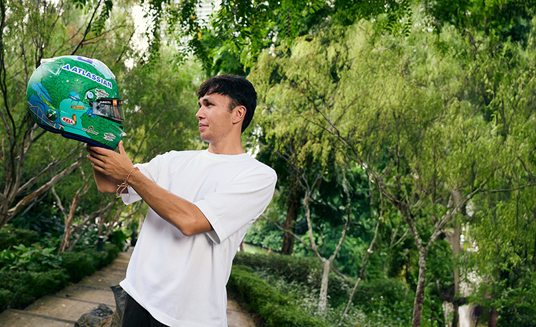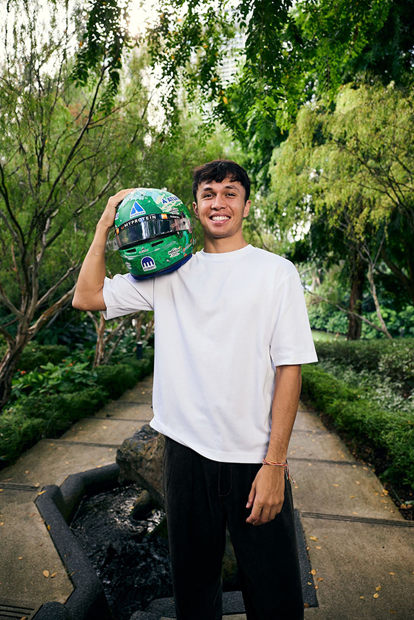อัลบอนเป็นลูกครึ่งไทย-อังกฤษ เกิดที่สหราชอาณาจักร โดยมีมารดาเป็นชาวไทย เขาลงแข่งขันภายใต้ธงชาติไทยตลอดเส้นทางอาชีพ ตั้งแต่การแข่งรถโกคาร์ทเมื่ออายุ 7 ขวบ จนก้าวสู่เวทีระดับโลก และได้กลายเป็นแรงบันดาลใจให้กับเด็กและเยาวชนทั่วประเทศ ในปี 2563 อัลบอนสร้างประวัติศาสตร์ด้วยการเป็นนักแข่งชาวไทยคนแรกที่ขึ้นโพเดียมในฟอร์มูล่าวัน ทัสกันกรังด์ปรีซ์ และในปี 2564 เขายังเป็นนักแข่งชาวไทยคนแรกที่คว้าชัยชนะในรายการ Deutsche Tourenwagen Masters หรือ DTM การมอบหมวกกันน็อกในครั้งนี้จึงสะท้อนถึงความตั้งใจของอัลบอน ในการมอบโอกาสให้เด็กในประเทศไทยได้เติบโตและพัฒนาศักยภาพอย่างเต็มที่