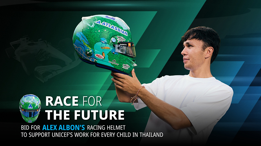 1 ตุลาคม 2568 อเล็กซ์ อัลบอน อังศุสิงห์ นักแข่งรถฟอร์มูล่าวันชาวไทยเพียงหนึ่งเดียวในปัจจุบัน มอบหมวกกันน็อกที่ออกแบบขึ้นเป็นพิเศษสำหรับการแข่งขันสิงคโปร์กรังด์ปรีซ์ 2025 เพื่อนำออกประมูลการกุศล สนับสนุนงานของยูนิเซฟ ประเทศไทย โดยรายได้ทั้งหมดจะนำไปช่วยพัฒนาคุณภาพชีวิตของเด็กที่ขาดโอกาสทั่วประเทศ